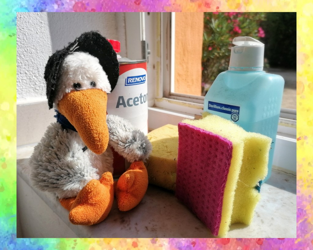 Heute sind die alten Klebereste in und an den Fenstern dran.