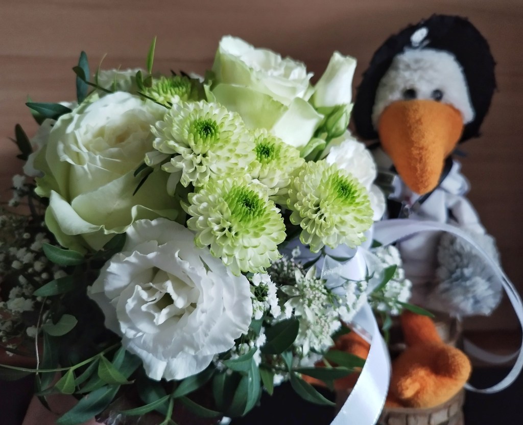 Unser Teenie musste auch einen Blumenstrauß für seine Tanzpartnerin/Freundin besorgen.