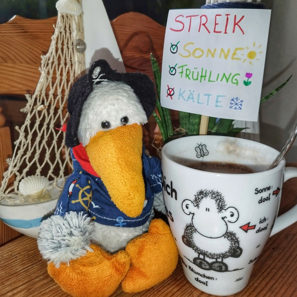 2. Mai 2023 Conny B. Erneuter Streik Ich befinde mich heute wieder im Streik!Jetzt hatten wir mal zwei/zweieinhalb Tage Sonne und nun…?Nun ist es wieder grau in grau!Daher trete ich wieder in den #plüschistreik! Teilen mit: Auf X teilen (Wird in neuem Fenster geöffnet) X Auf Facebook teilen (Wird in neuem Fenster geöffnet) Facebook Gefällt mir Wird geladen … Ähnliche Beiträge