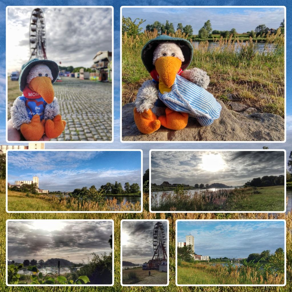 Wenn ich an der Elbe gestanden habe und nach rechts geschaut habe, war es dunkel und irgendwie zugezogen (das sind die dunklen Bilder), habe ich in die andere Richtung geschaut, dann sah es nach einem super Tag mit tollem Wetter aus.