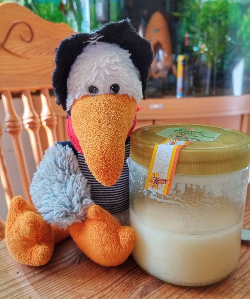 Leider haben wir keinen Rapshonig aus NF mehr, aber wir haben Rapshonig aus unserem Nachbardorf … den genießen wir jetzt zum Frühstück.