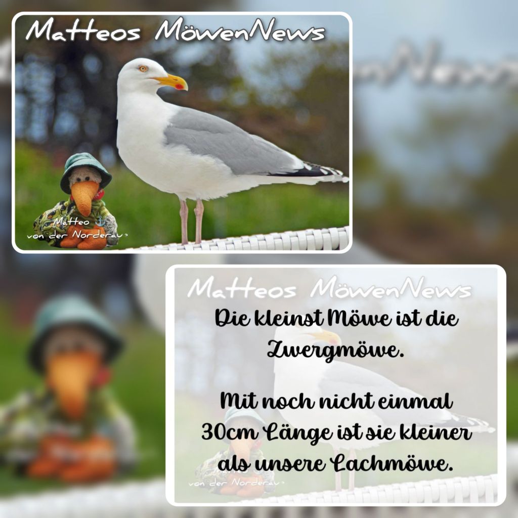 ⚠️ MATTEOS MÖWENNEWS ⚠️ Da ich euch heute schon verraten habe, dass die Mantelmöwe, die größte Möwe ist, verrate ich euch heute auch noch, dass die Zwergmöwe, die kleinste Möwe ist. Mit noch nicht einmal 30cm Länge ist sie kleiner als unsere Lachmöwe. ⚓