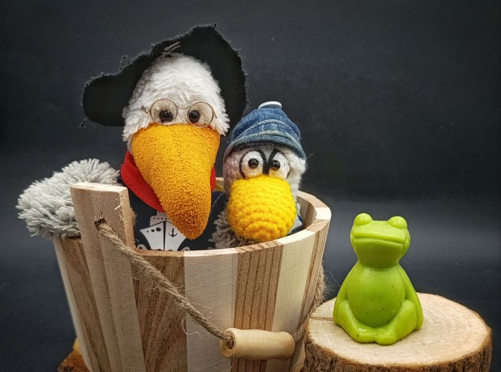 Die Kollegin meiner Menschin hat uns ja zu Theo verholfen… diese Kollegin sammelt Frösche… also, bekommt diese Kollegin als kleines Dankeschön diesen niedlichen SeifenFrosch.