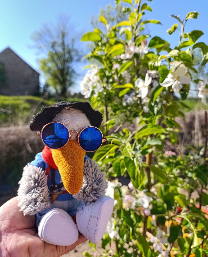 Meine Menschin hat letztes Jahr in einen total harten Boden und arbeitsbehinderung durch die Hühner einen Apfelbaum gepflanzt, damit sie Hühner irgendwann mal Schatten durch diesen Baum haben. Dieses Jahr steht der Baum in voller Blüte und meine Menschin freut sich wahnsinnig darüber. ⚓