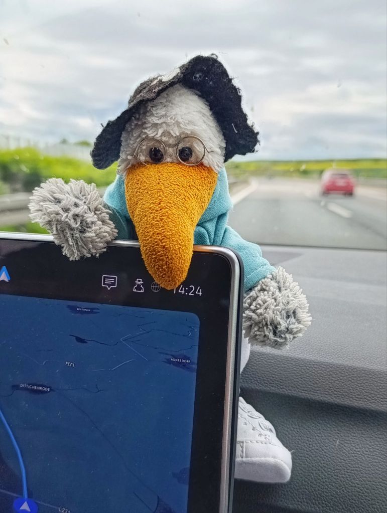 Endlich haben wir Kassel und ganz viel Stau hinter uns. Wir fahren noch mindestens zwei Stunden… Ich habe mich zu warm angezogen, im Auto… hinter der Scheibe ist es warm… und die Sonne wird auch stärker… einmal bitte anhalten, ich muss mich umziehen… ⚓