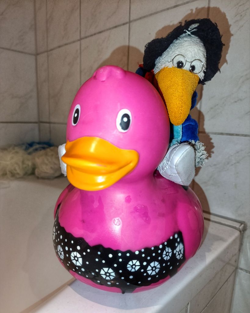 Zu Hause wurde die Ente geschrubbt und dabei wurde ein Name sichtbar.